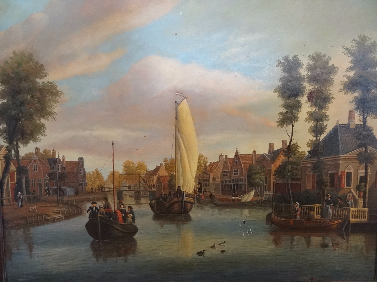 Beautiful Very Large Dutch Canal Scene Oil Painting From 'The Ritz Hotel, Paris'