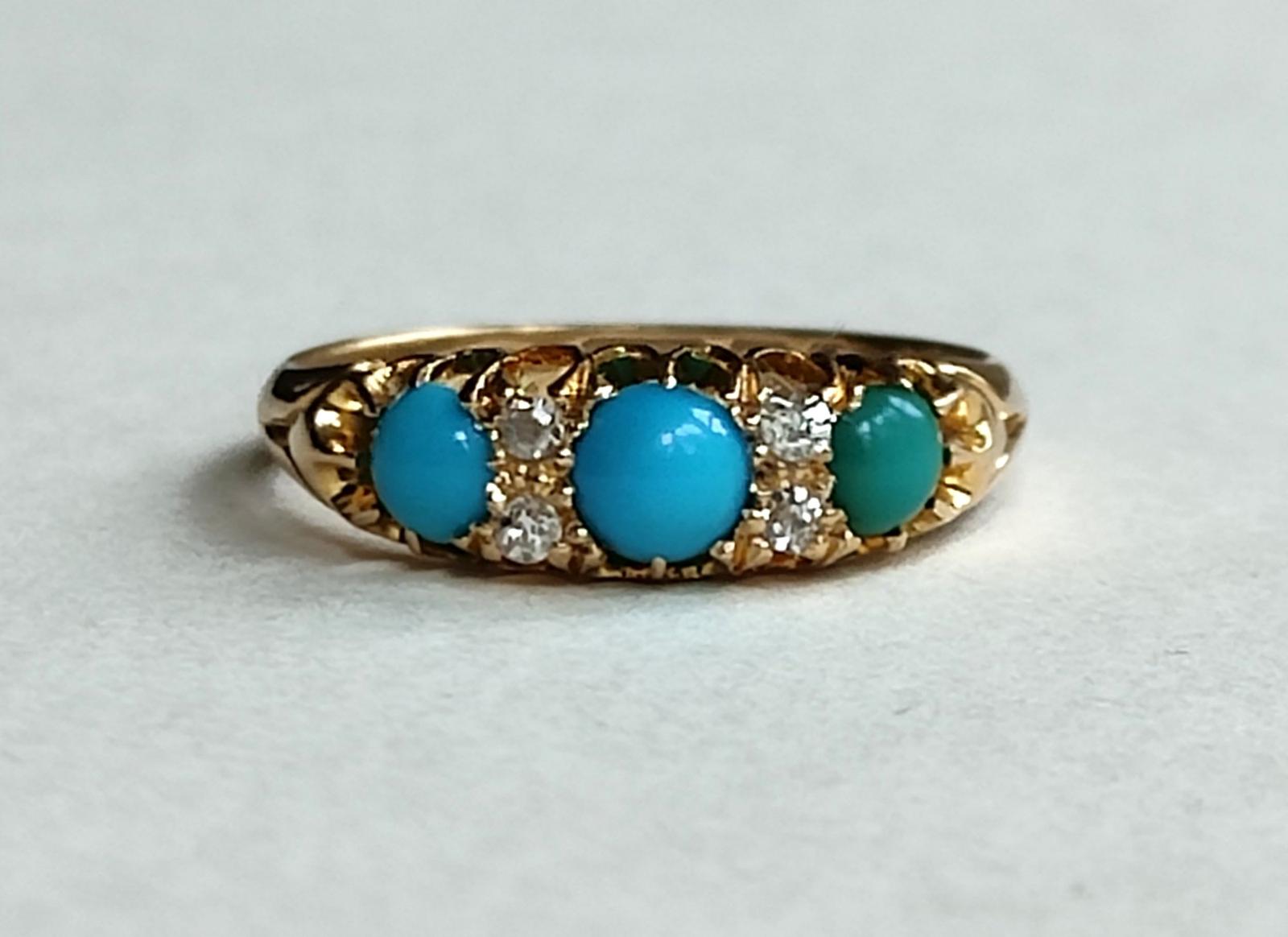 Beautiful Victorian 18ct Gold Turquoise Diamond Ring