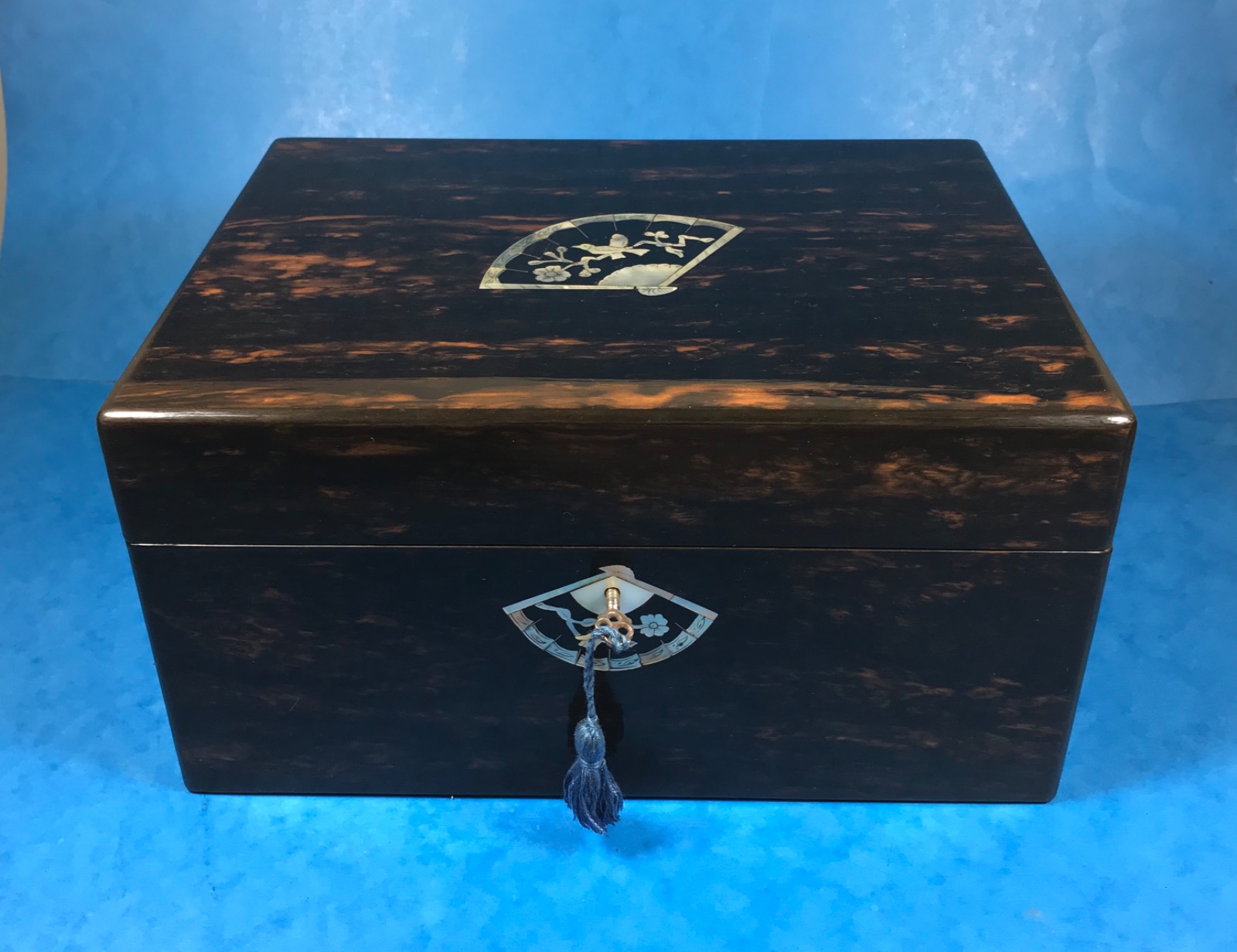 Beautiful Victorian Coromandel Fitted Sewing Box with Beautiful Mother of Pearl Inlay