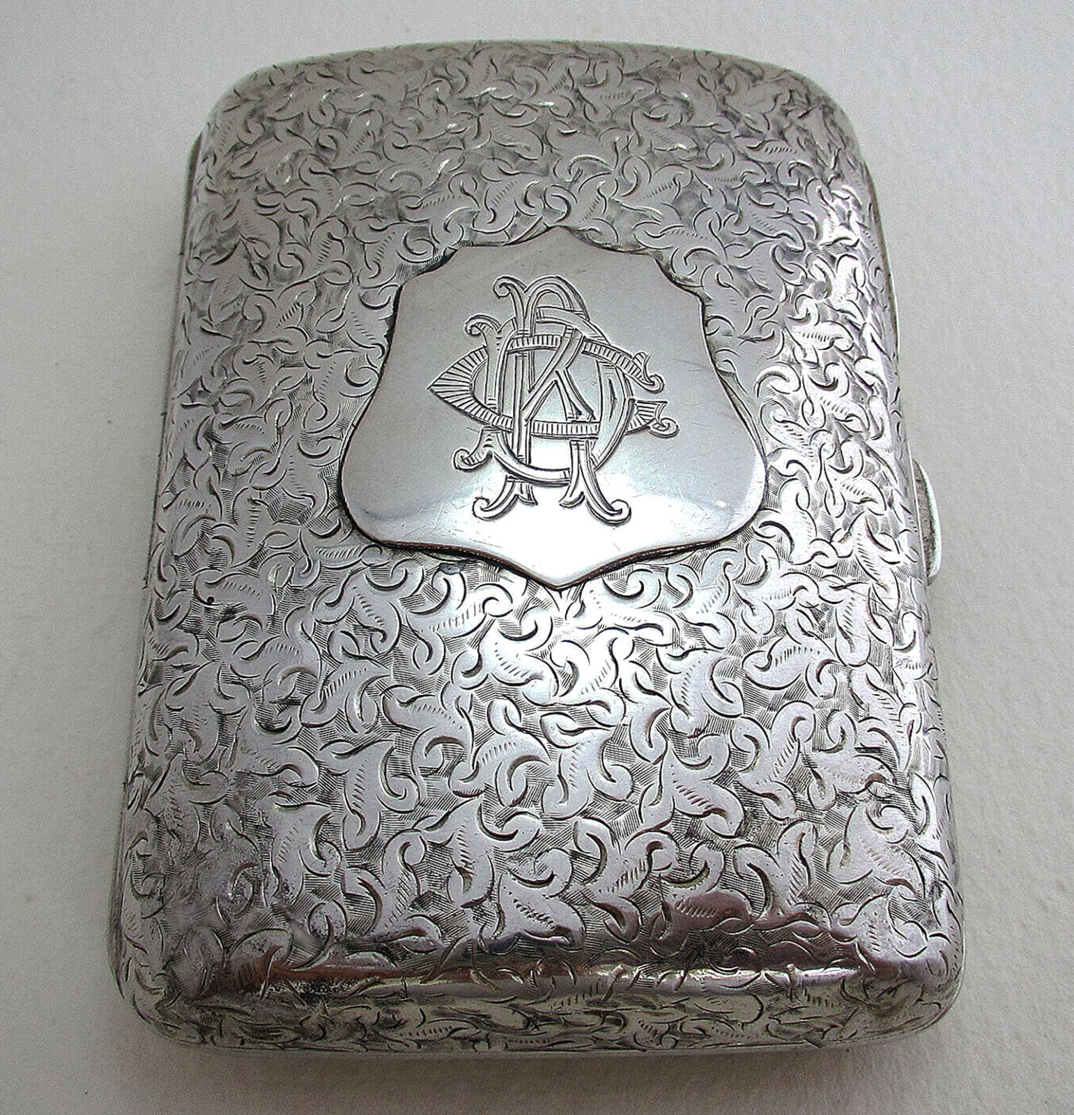 Beautiful Victorian Engraved Solid Sterling Silver Cigarette Card Case/Box. English Birmingham Hallmarked 1893. Minshull & Latimer.