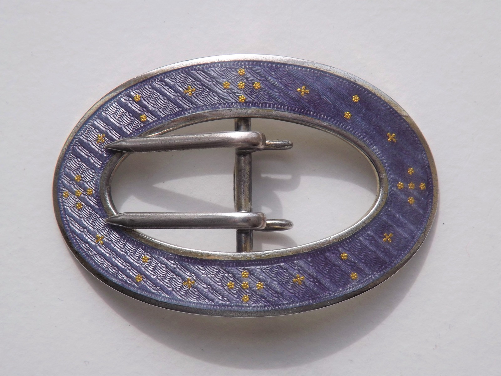 Beautiful Victorian Era Sterling Silver & Guilloche Enamel Buckle C.1900 (1 of 7)