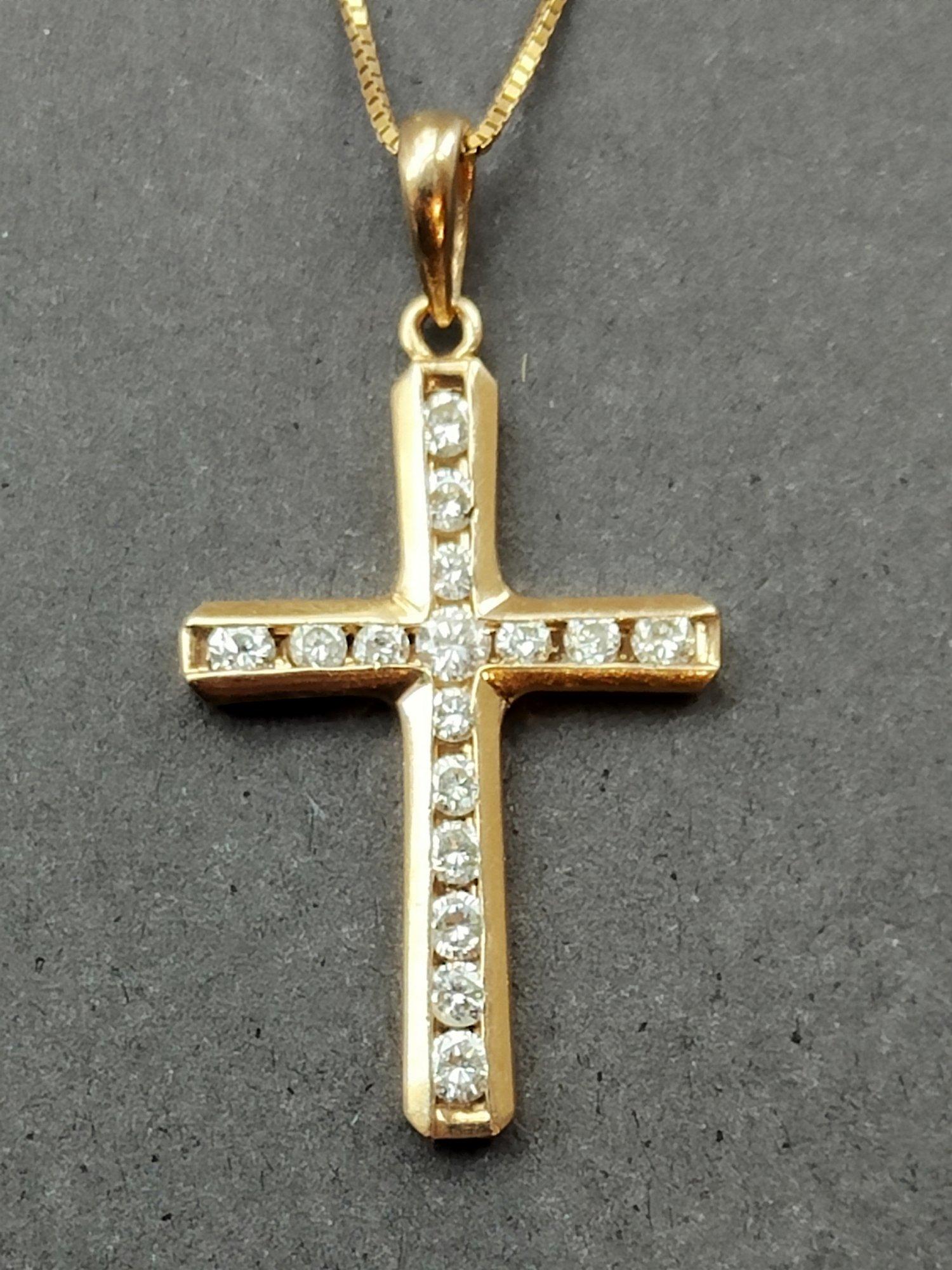 Beautiful Vintage 9ct Gold Diamond Cross 0.50ct & 14ct Chain (1 of 8)