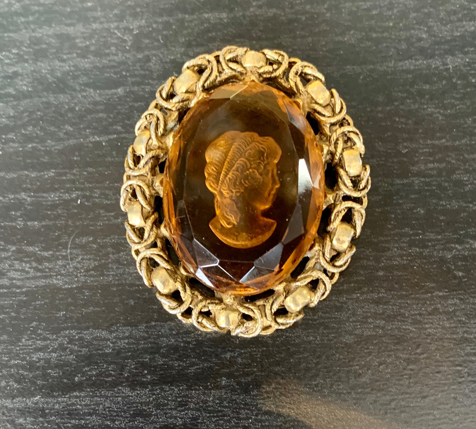 Beautiful Vintage Gold Plated Amber Cameo c.1930