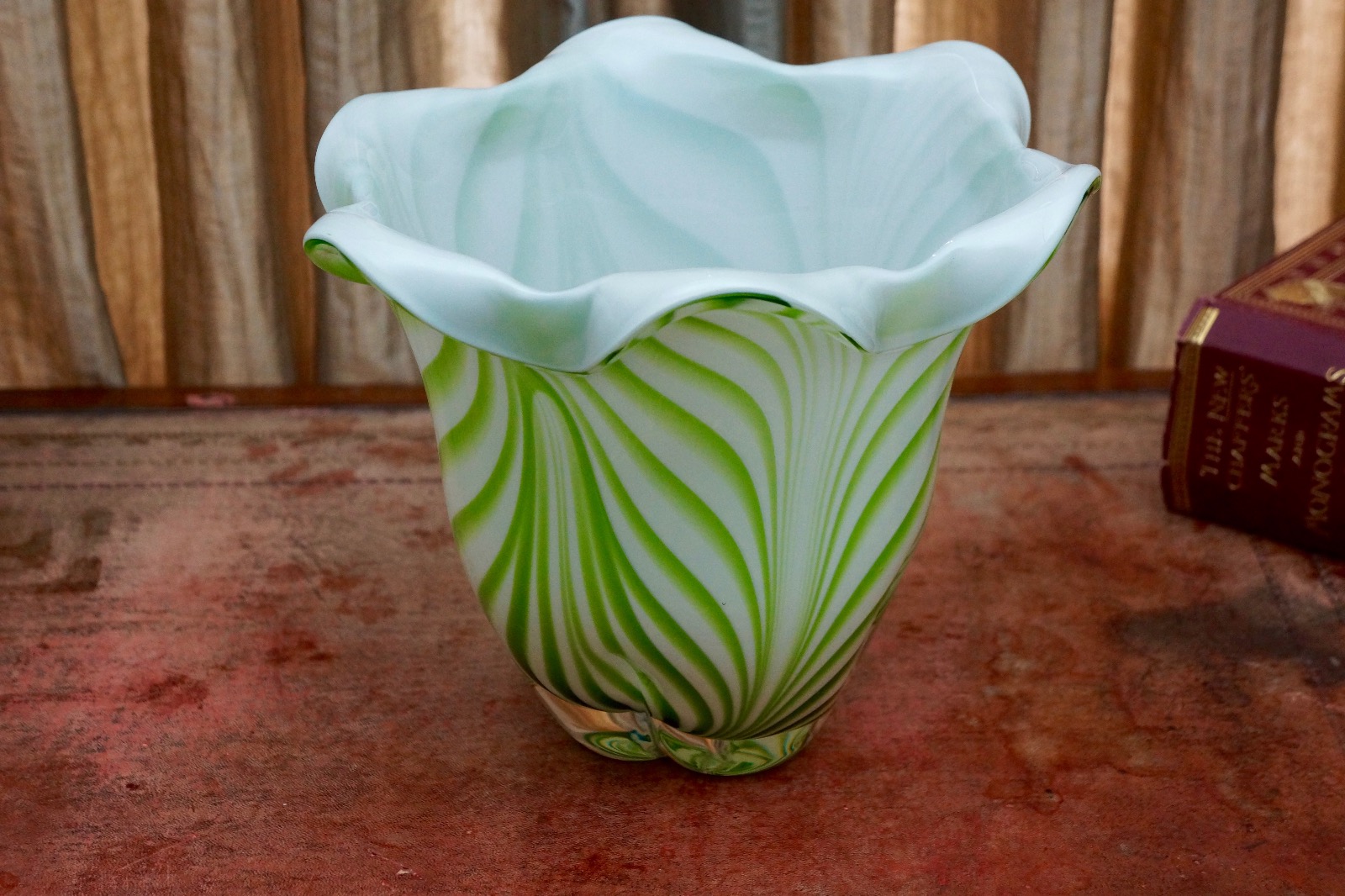 Beautiful Vintage Lime Green and Opaque White Glass Vase