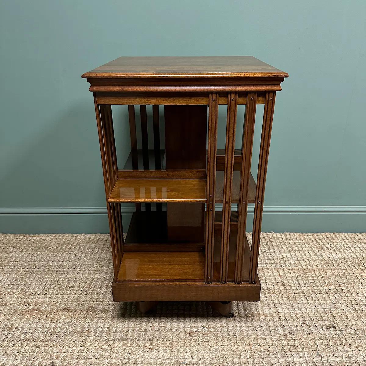 Beautiful Walnut Edwardian Antique Revolving Bookcase
