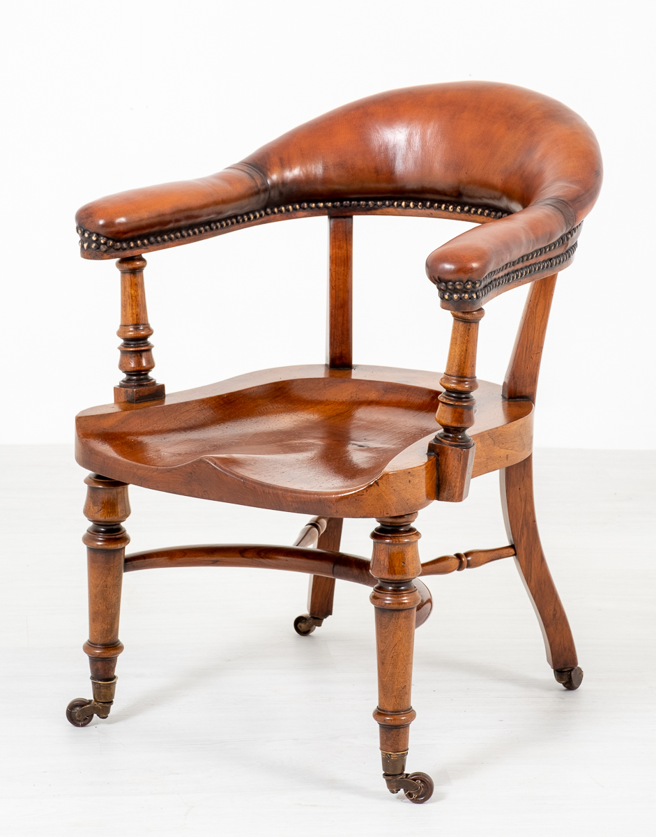 Beautiful Walnut & Leather Desk Chair C.1860 (1 of 1)