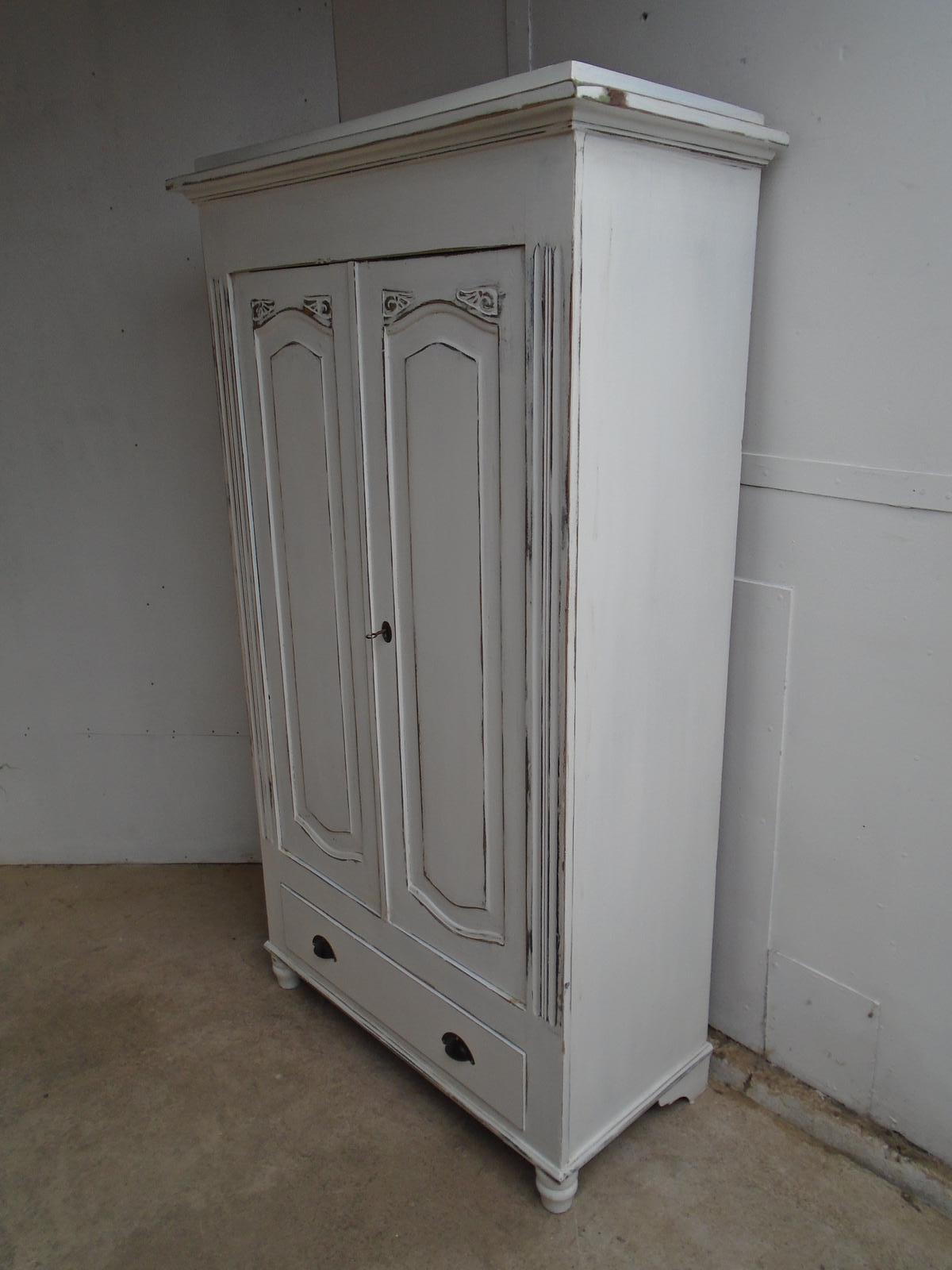 Beautifully Carved & Painted White Small Antique Pine Child's Wardrobe