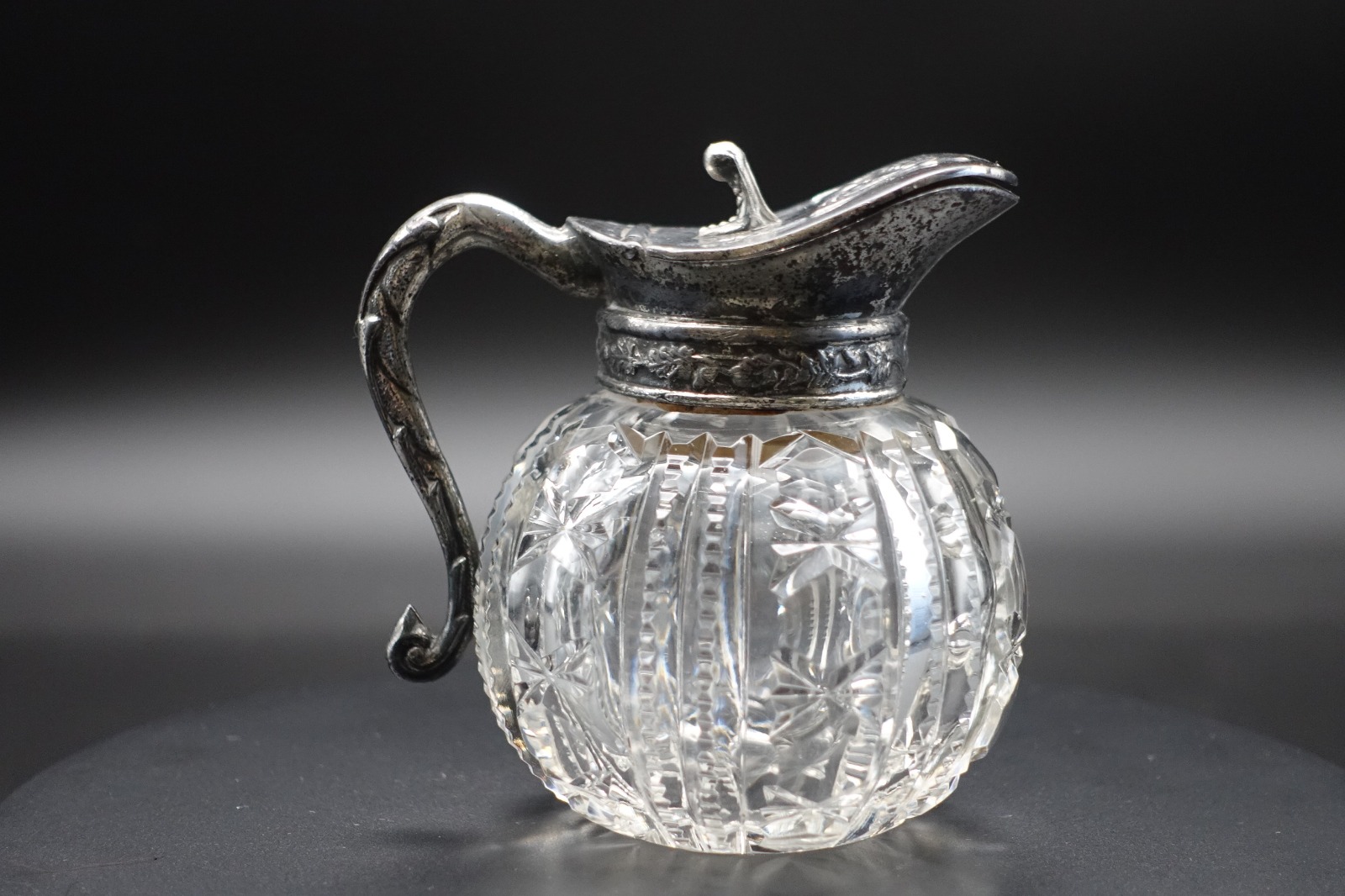 Beautifully Cut Late 19th Century Glass & Silver Plate Jug