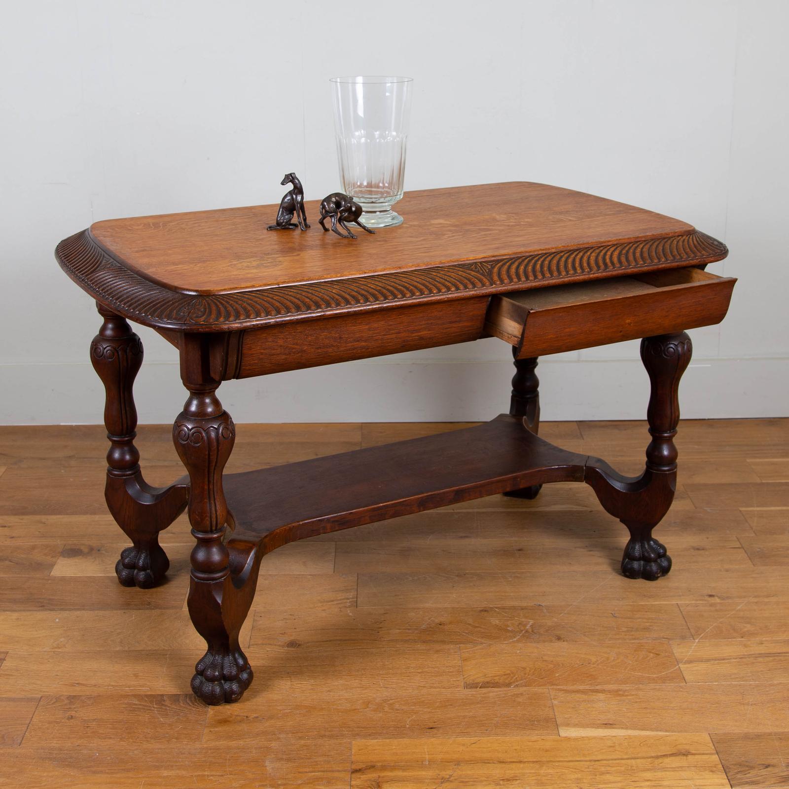 Beautifully Decorative 1920s Oak Desk Console Centre Table