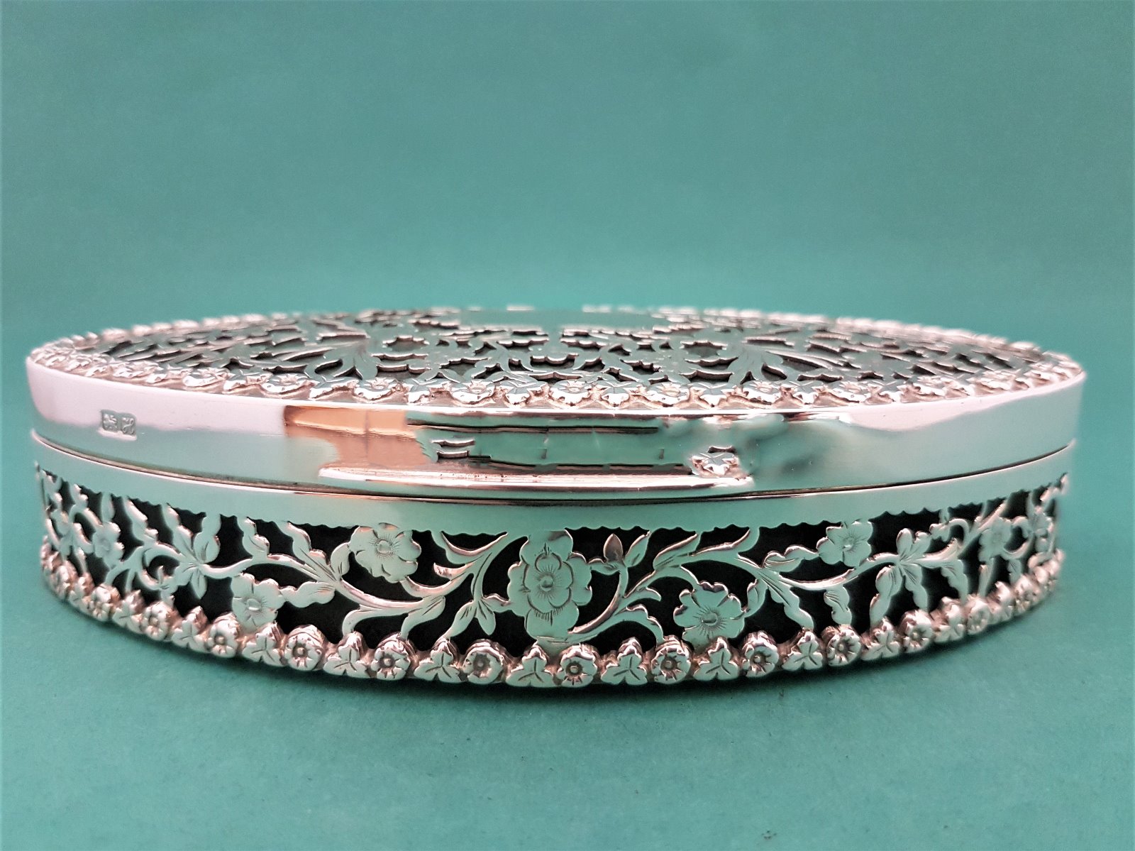Beautifully Decorative Antique Edwardian Lined Silver Trinket Box