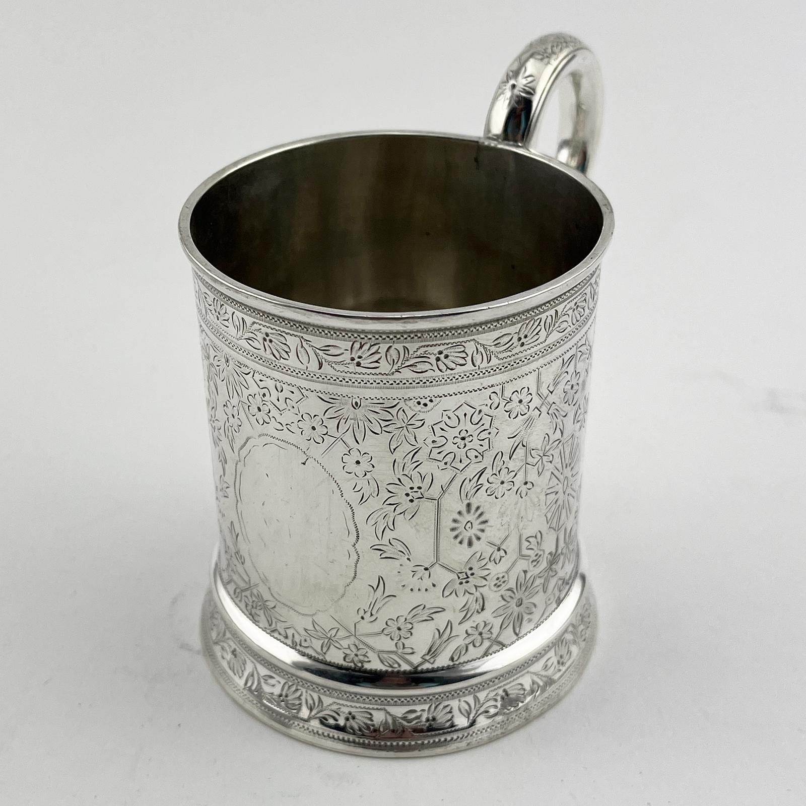 Beautifully Engraved Victorian Sterling Silver Childs Christening Mug