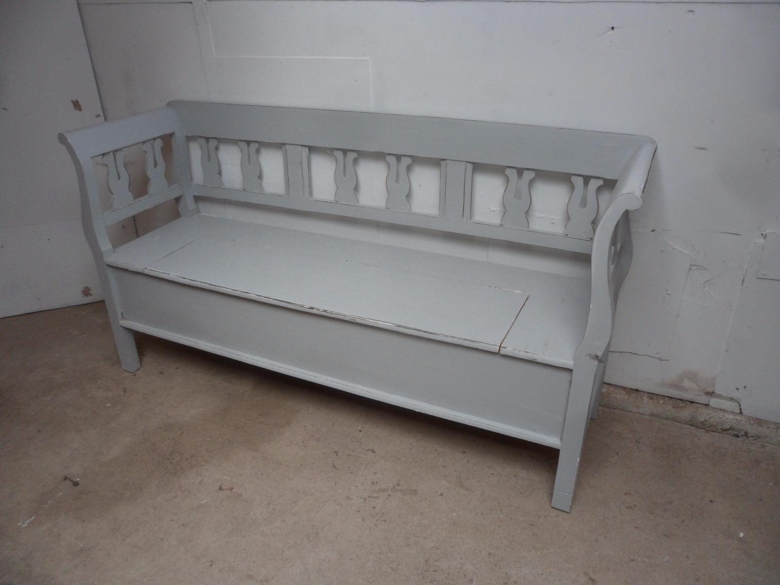 Beautifully Painted 2/3 Seater Light Grey Shabby Chic Box Settle / Bench