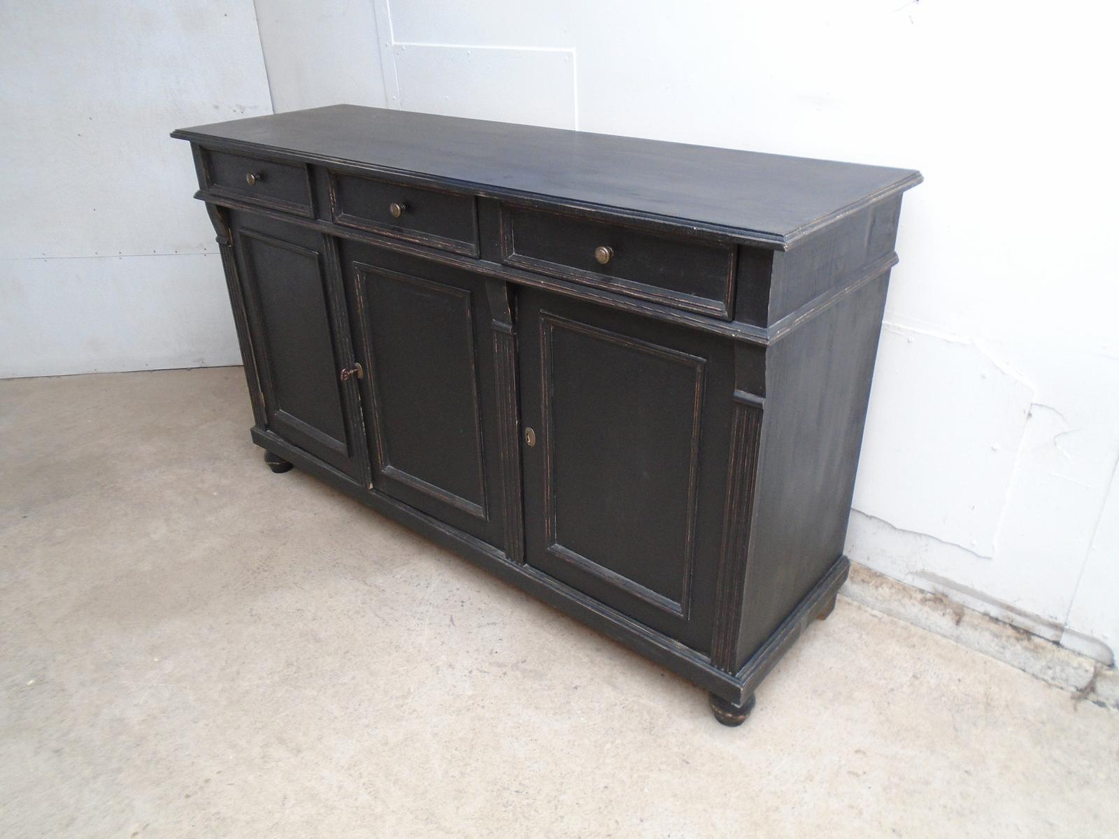 Beautifully Painted Black Antique Pine 3 Door Kitchen Dresser Base / TV Stand