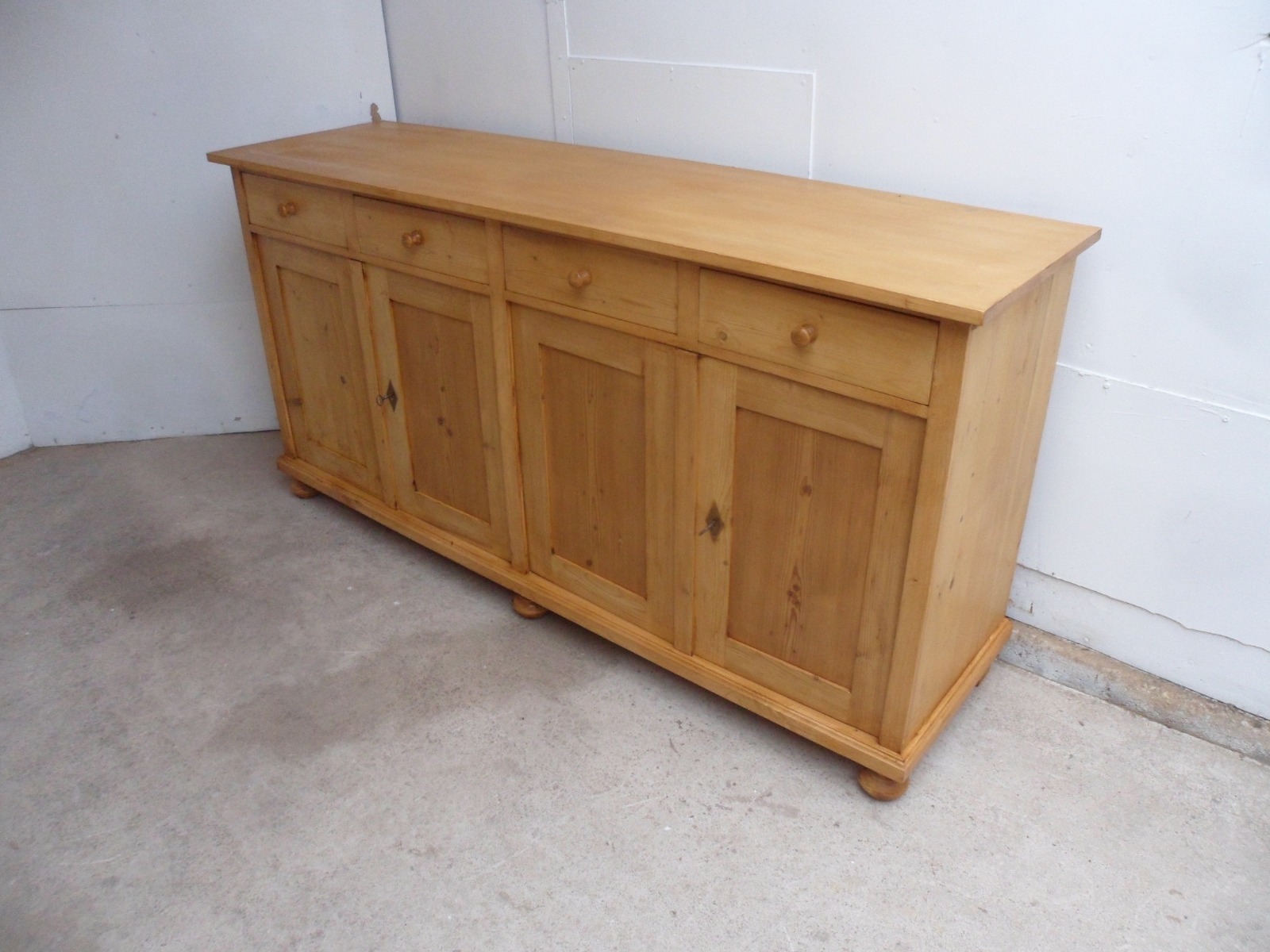 Beautifully Waxed 6 Foot Reclaimed Pine 4 Door Kitchen Dresser Base Sideboard