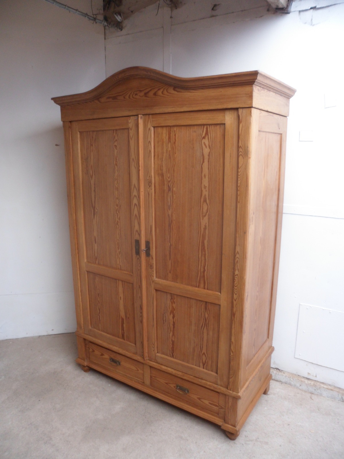 Beautifully Waxed Arch Top 2 Door Old Pine Large Knockdown Wardrobe c.1920