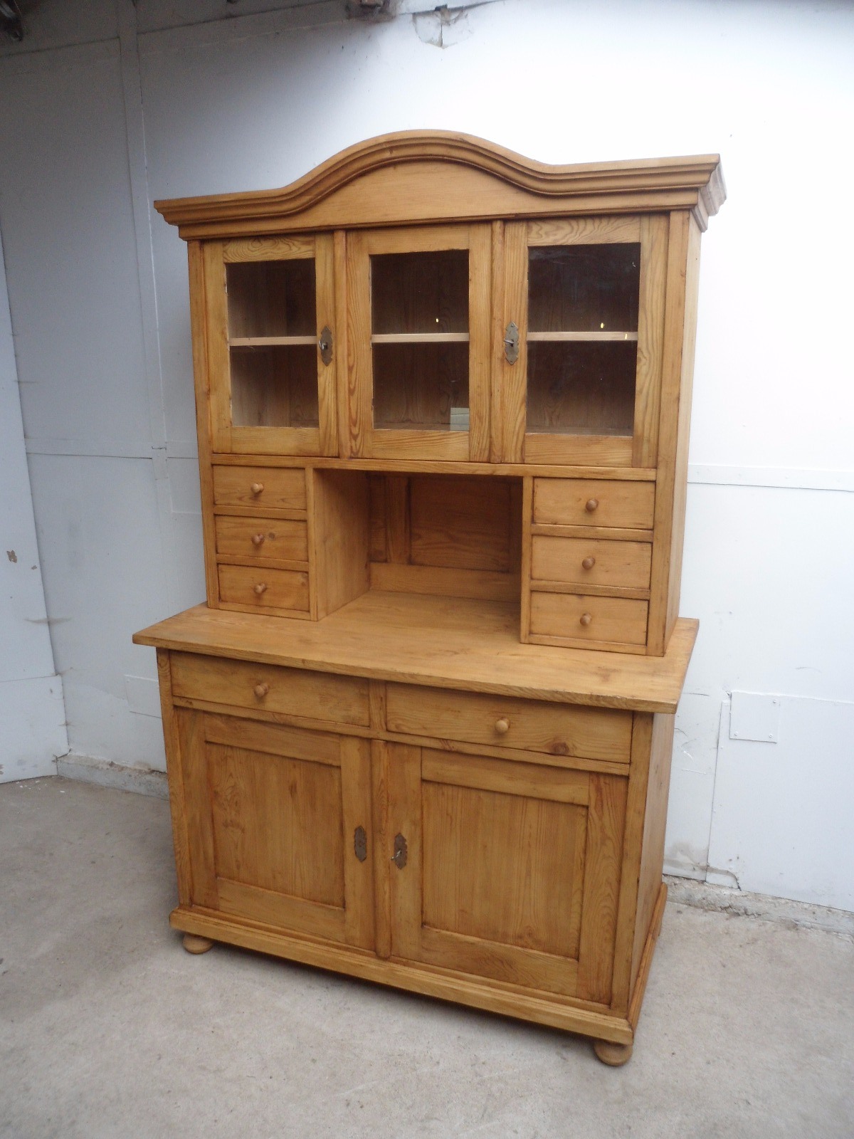 Beautifully Waxed Large 2 Piece Old Pine 6 Spice Drawer Kitchen Dresser