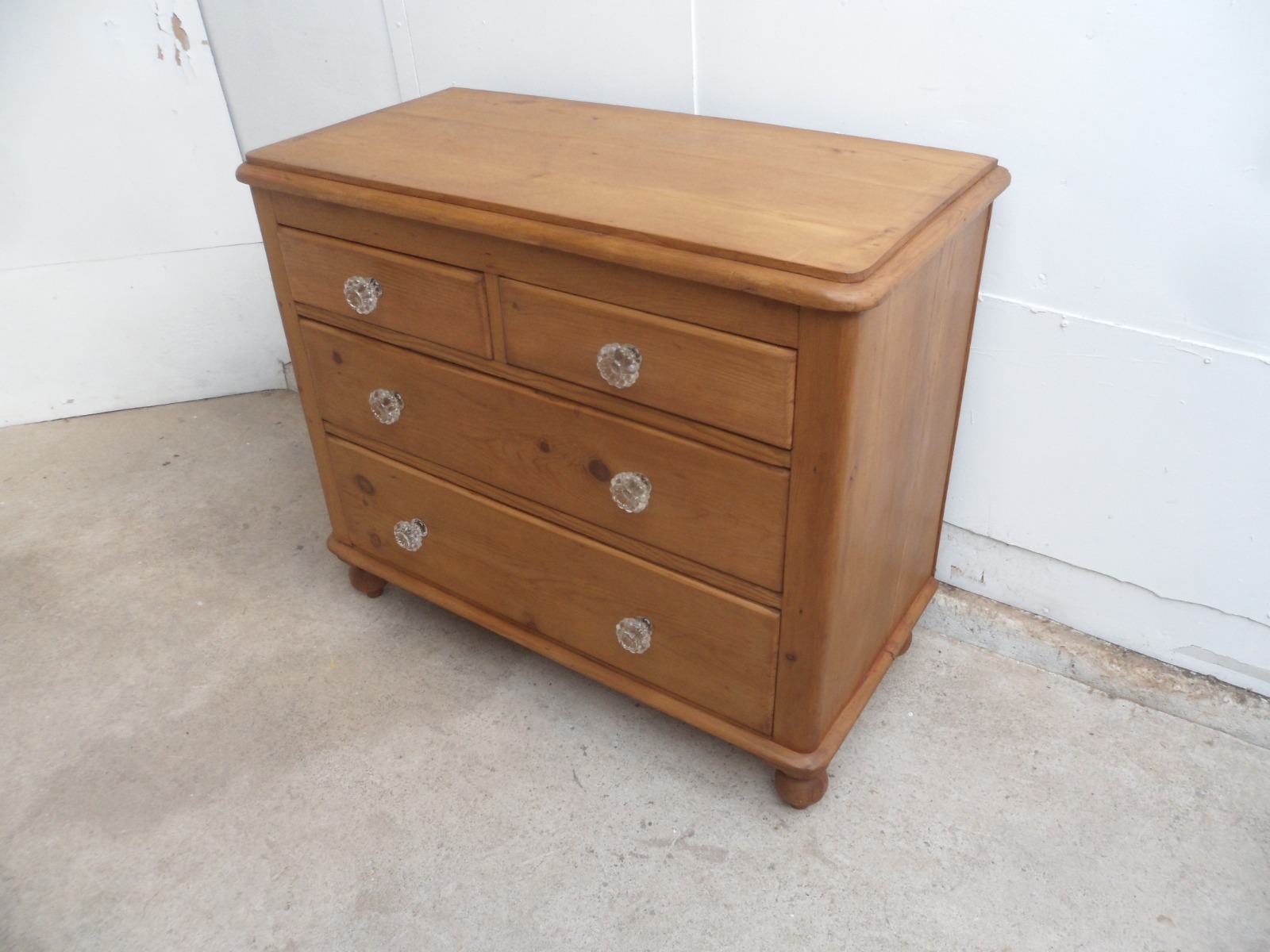 Beautifully Waxed Low Victorian Antique Pine 4 Drawer Chest of Drawers