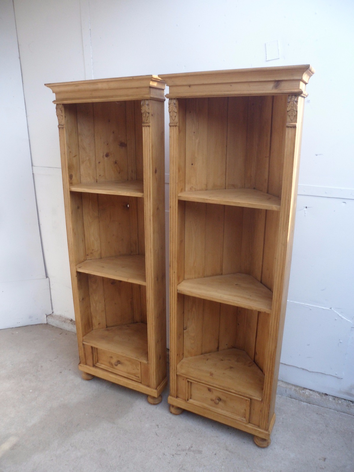 Beautifully Waxed Pair of Pine Tall Corner Cabinets / Display Cabinets