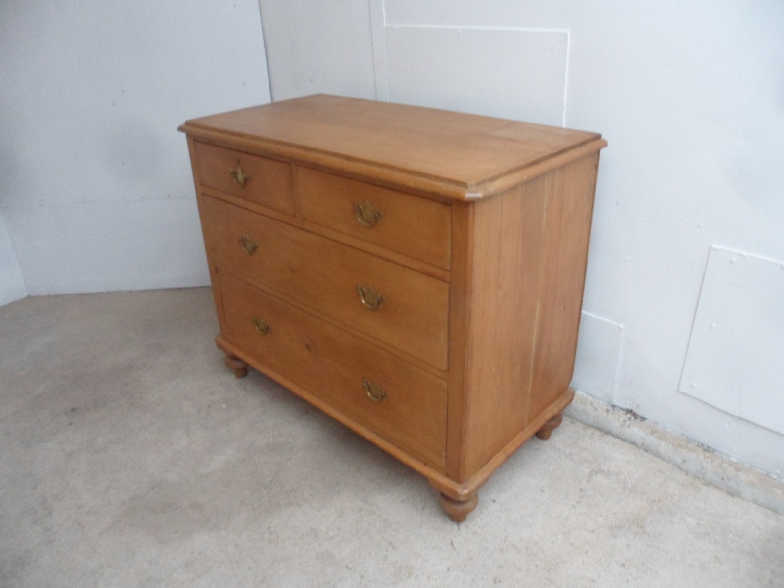 Beautifully Waxed Victorian Antique Pine Large 4 Drawer Chest of Drawers