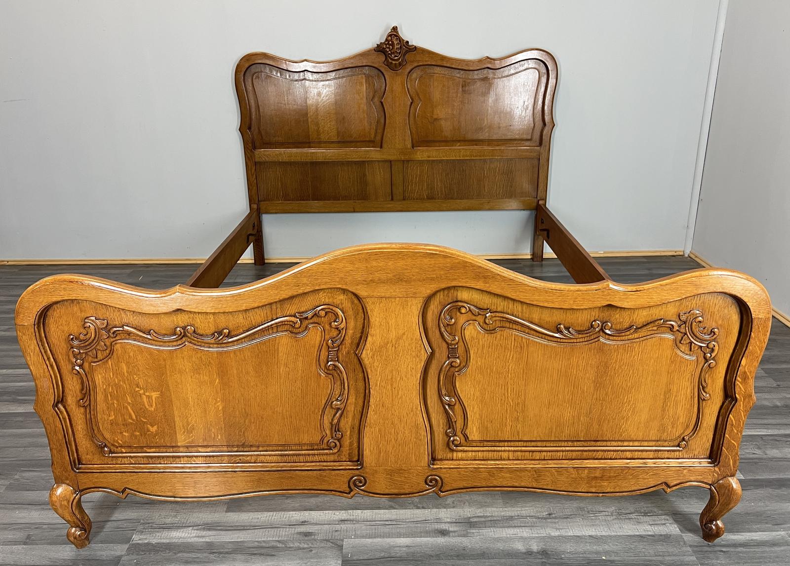 Bed Frame Vintage French Style Oak Carved Panel Double Bed