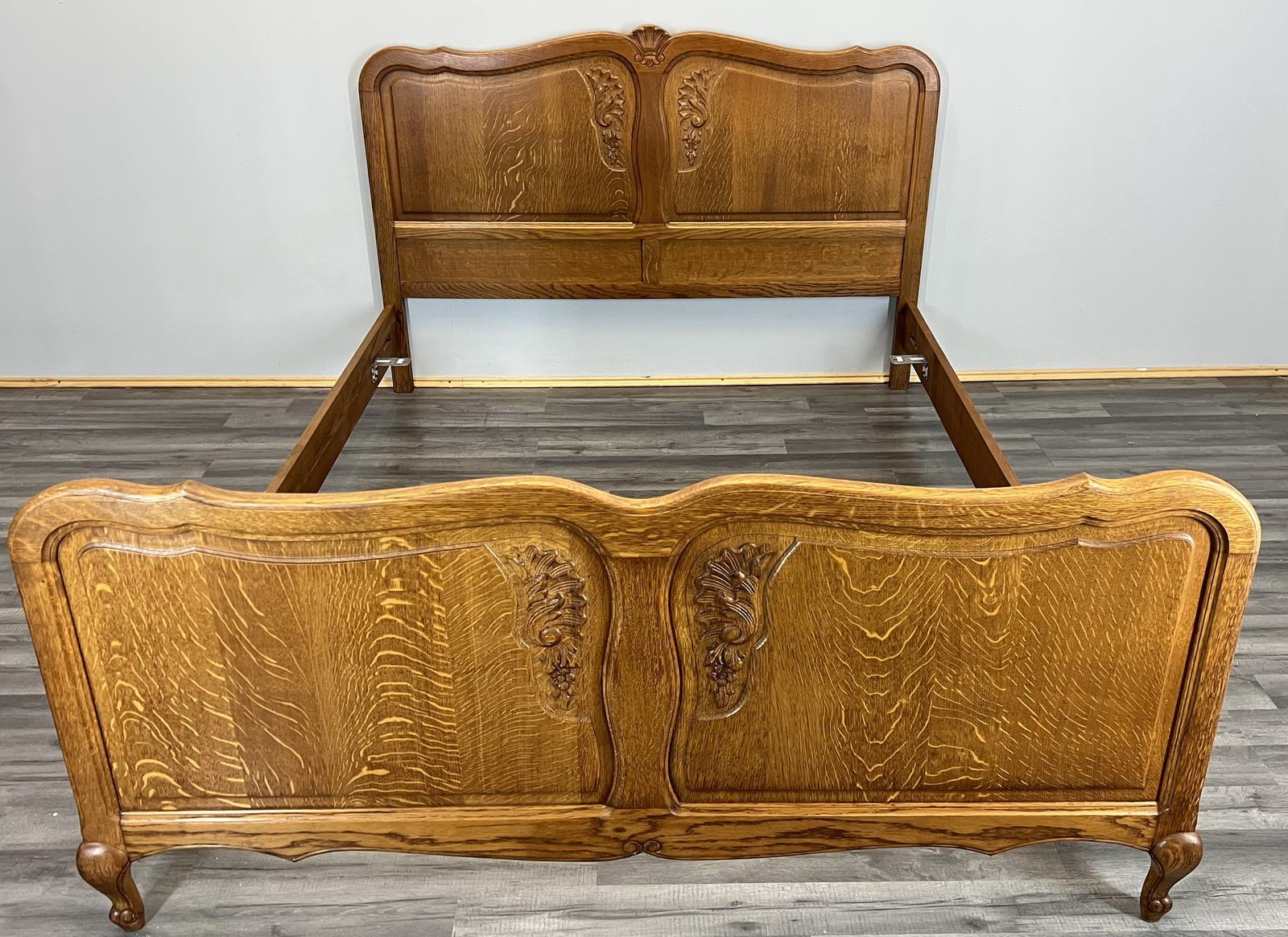 Bed - Vintage French Louis XV Double Bed Frame Oak Carved Headboard (1 of 8)