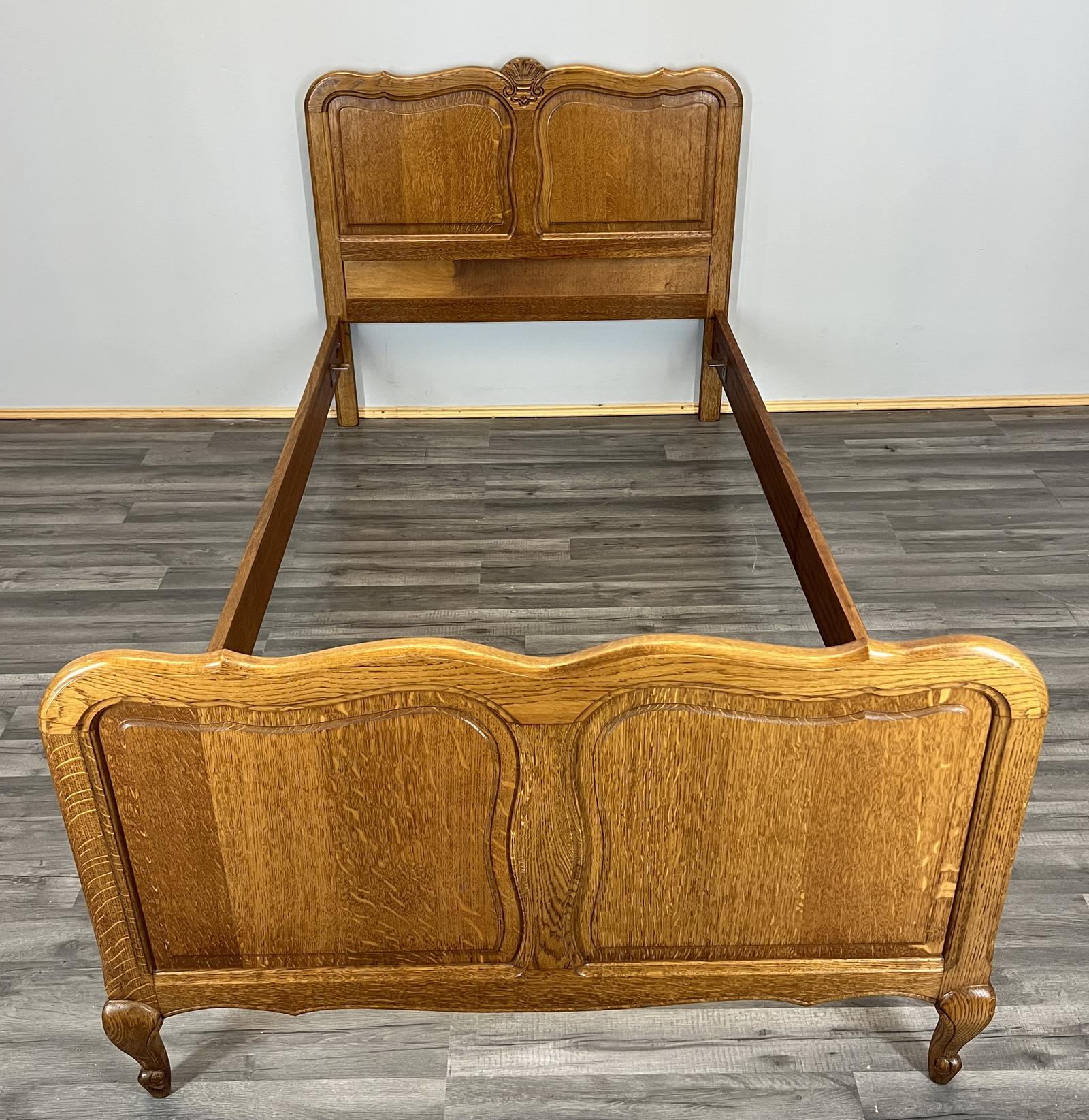 Bed - Vintage French Louis XV Single Bed Frame Oak Carved Headboard