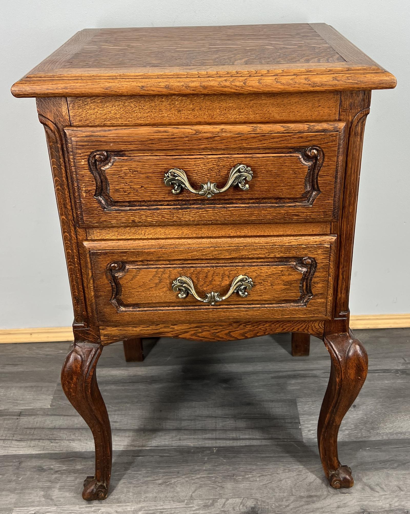 Bedside Table Vintage French Oak Carved Nightstand Cabinet