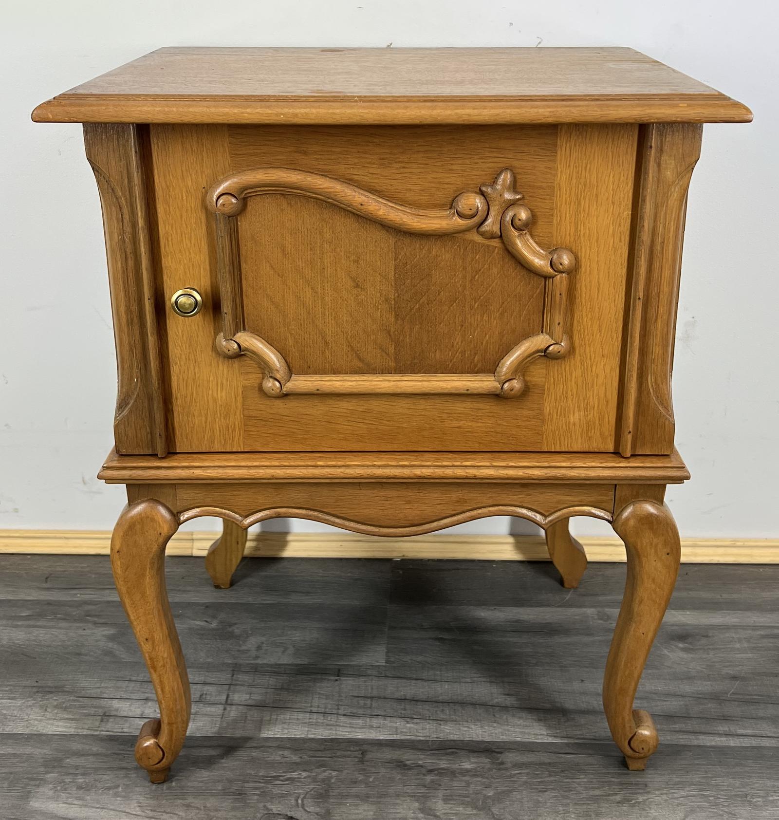 šŖ This elegant vintage French Louis XVI style bedside table is a beautifully styled piece, featuring refined lines, a warm wood tone, and graceful cabriole legs. The decorative front panel and compact proportions make it a charming and practical addition to any bedroom or living space.