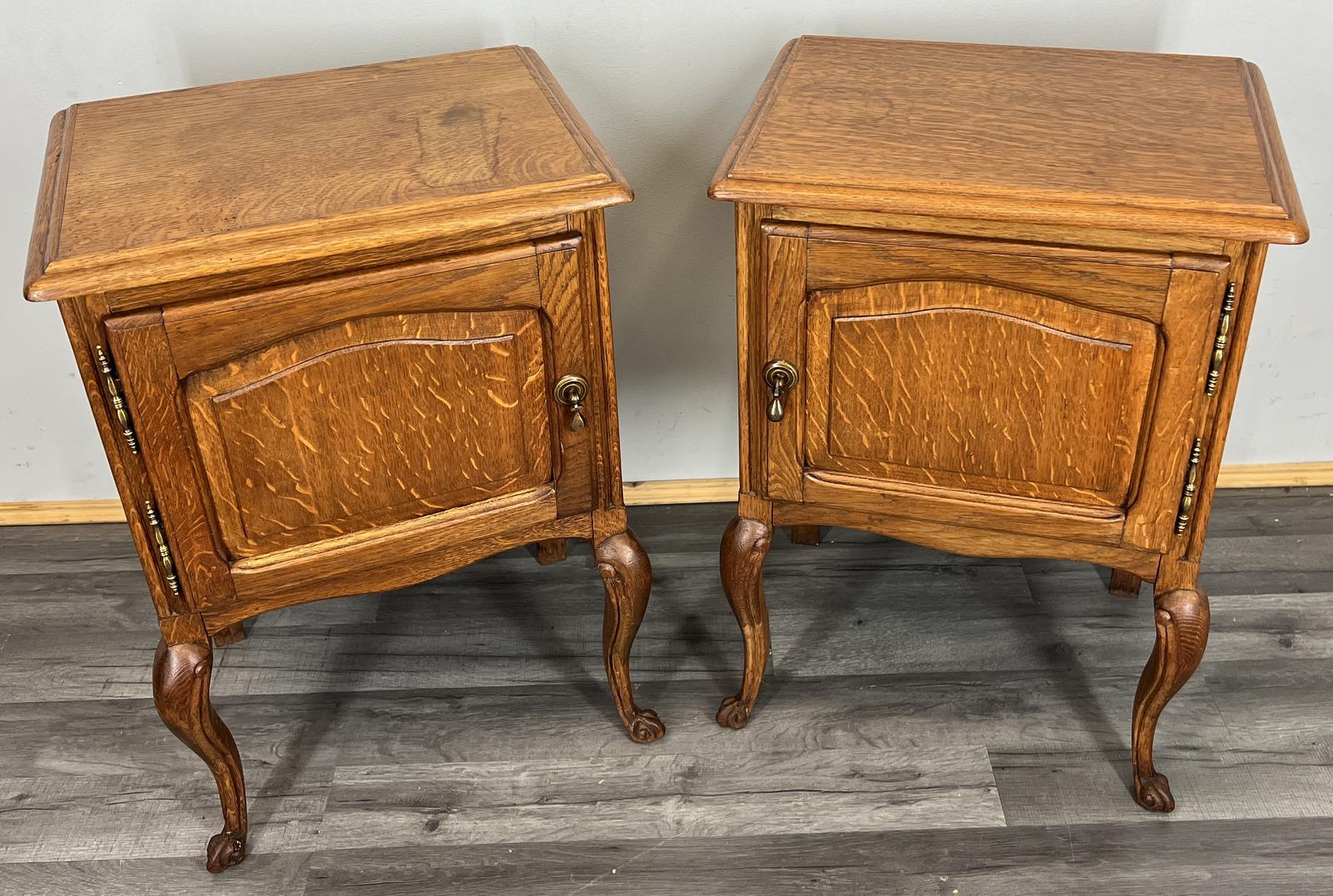 Bedside Tables Pair French Vintage Carved Oak Cupboards Cabinets