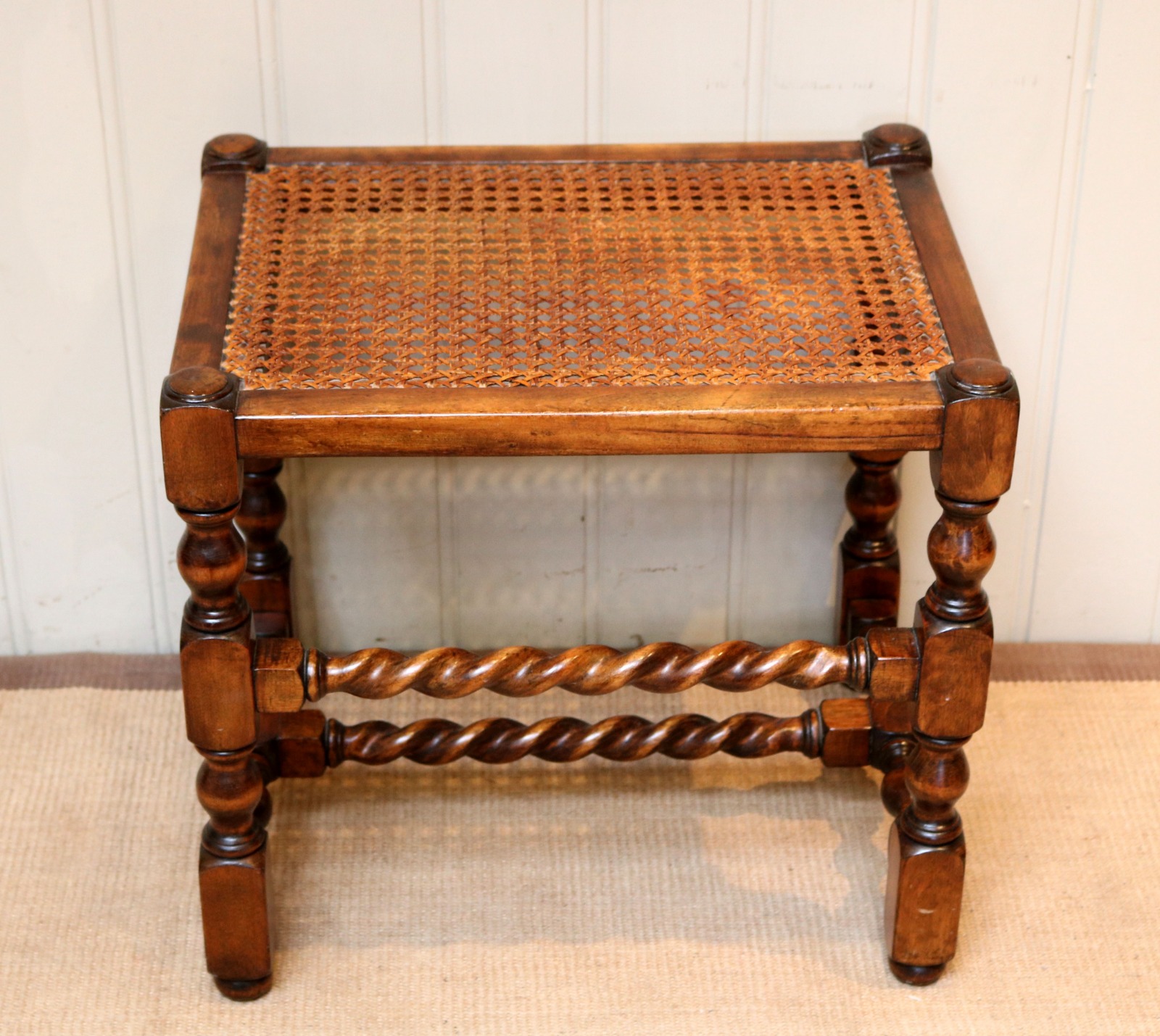 Beech Wood Cane Seat Stool c.1920 (1 of 1)