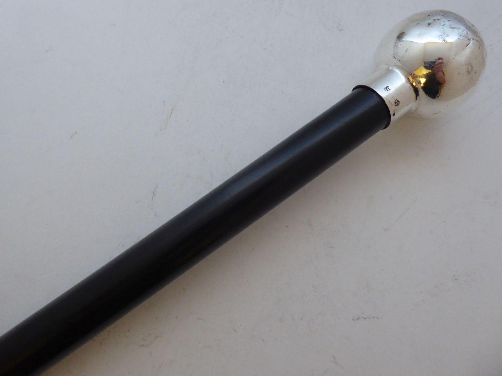 Belgian Walking Stick Cane Solid Silver Pommel Ebony Wood Shaft c.1900