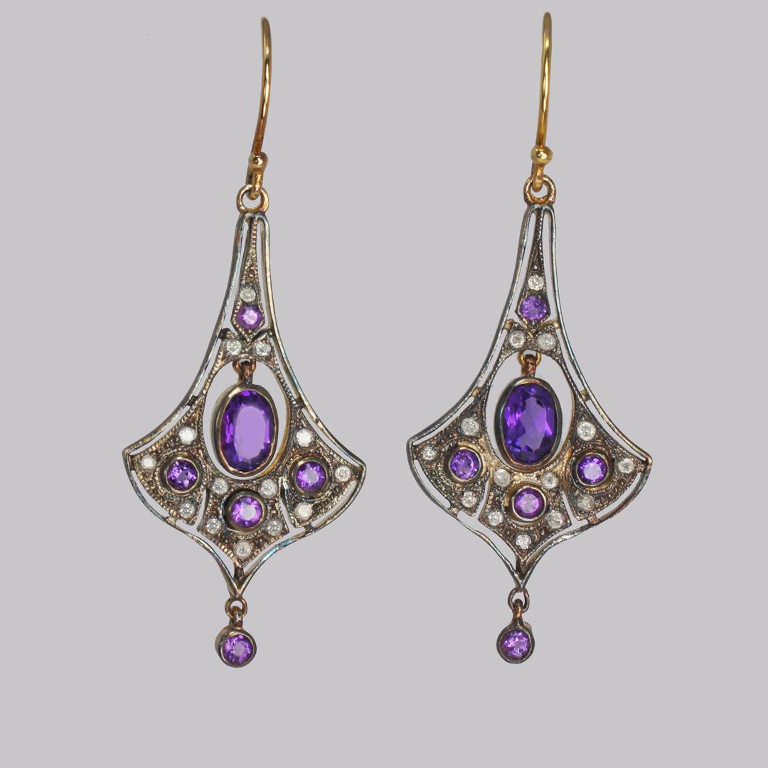 Belle Epoque Amethyst & Diamond Dangle 18ct Gold Edwardian Drop Earrings
