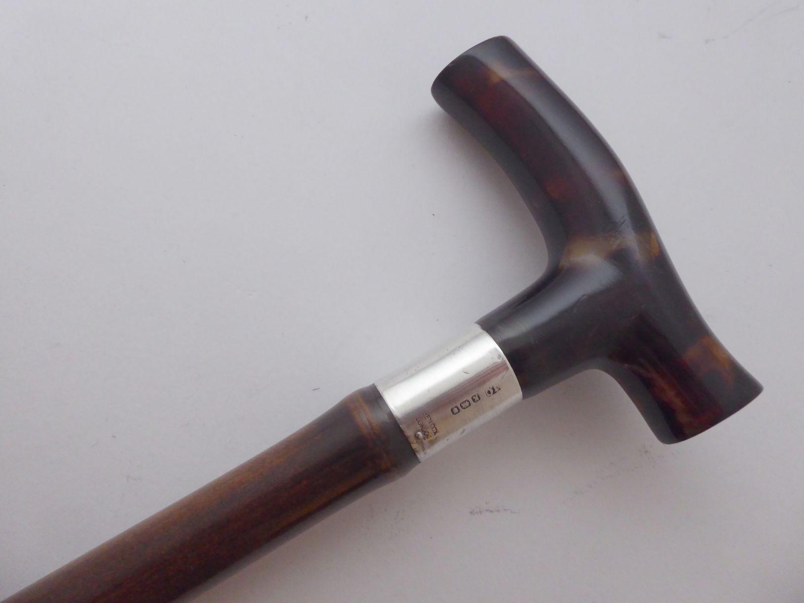 Ben Cox Tortoiseshell 1945 Silver & Bamboo Oversize Walking Stick Cane