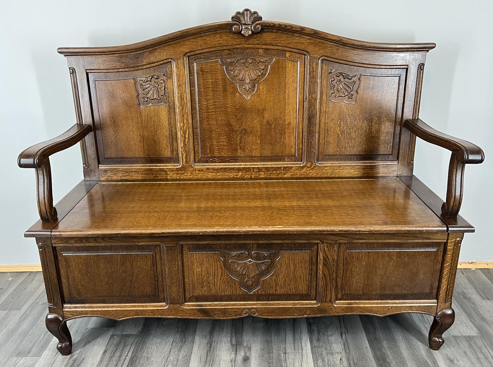 Bench Vintage French Oak Storage Carved Trunk Hall Settle Entryway (1 of 14)
