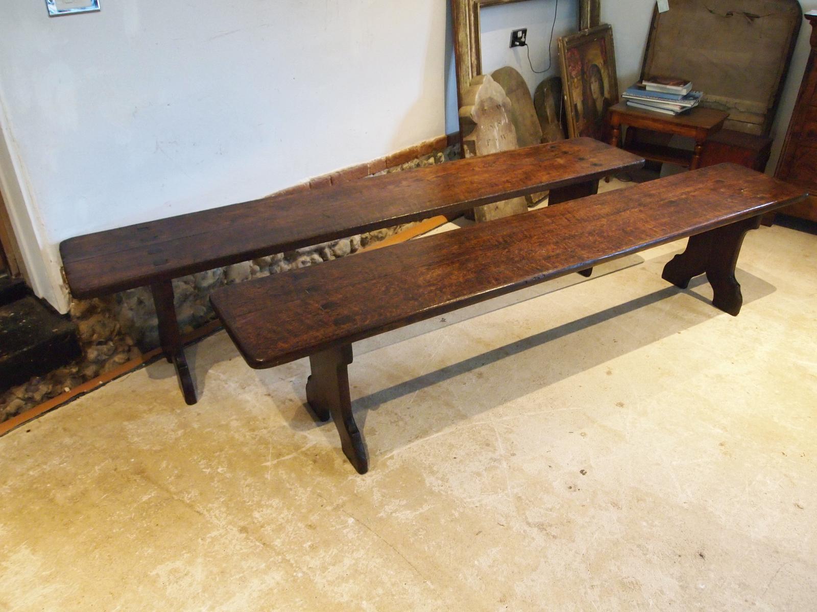 Benches Fine Pair of Victorian Oak Refectory Benches c.1890