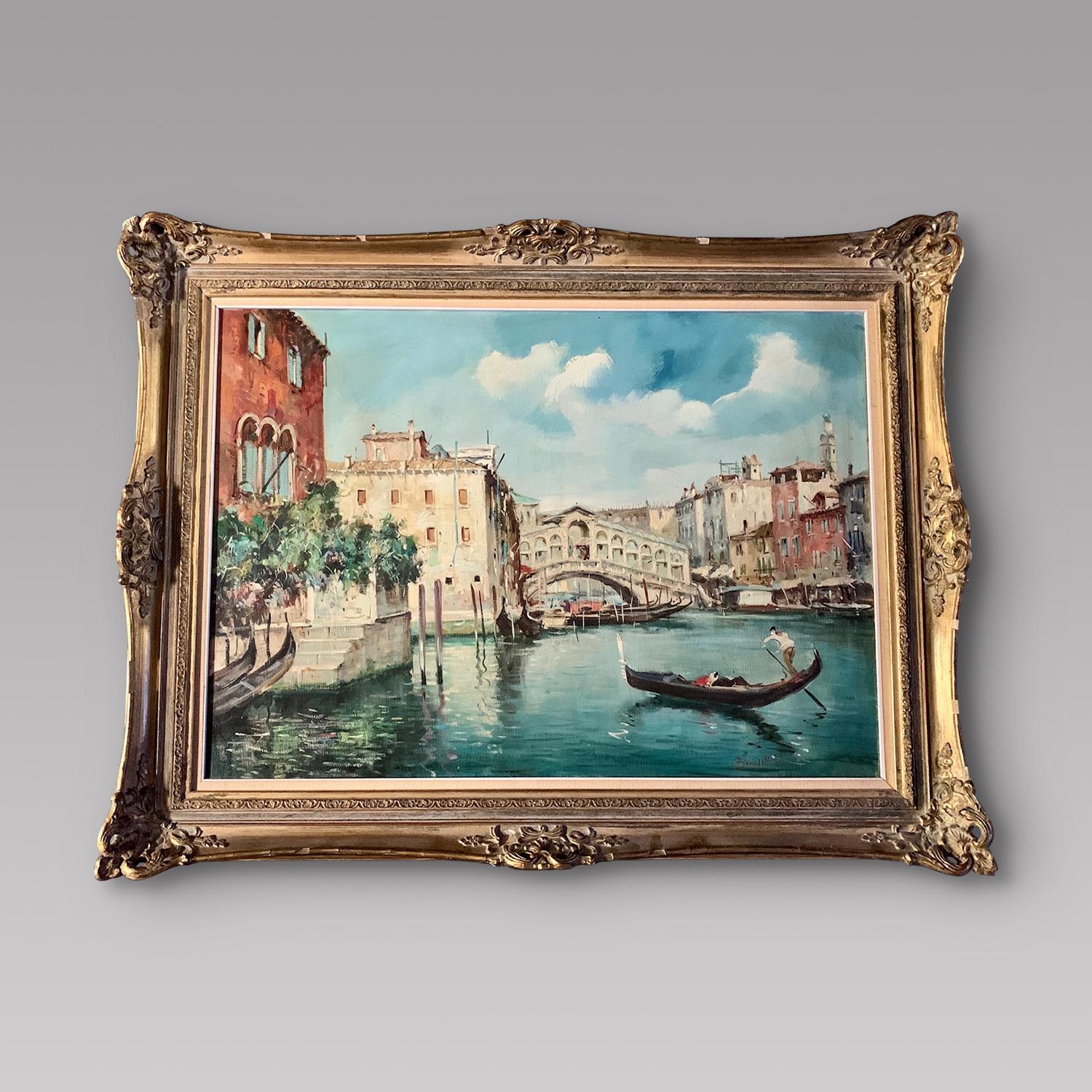 Benedetti - Oil on Canvas - Venice, The Rialto Bridge