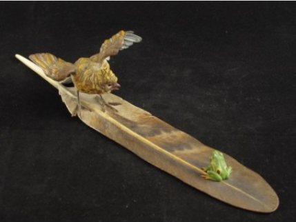 Bergman Bronze Feather with Small Bird and Frog c.1900