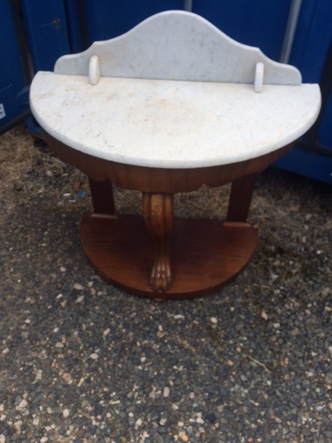 Biedermeier Style Satinwood Demi Lune Washstand with Marble Top & Apron