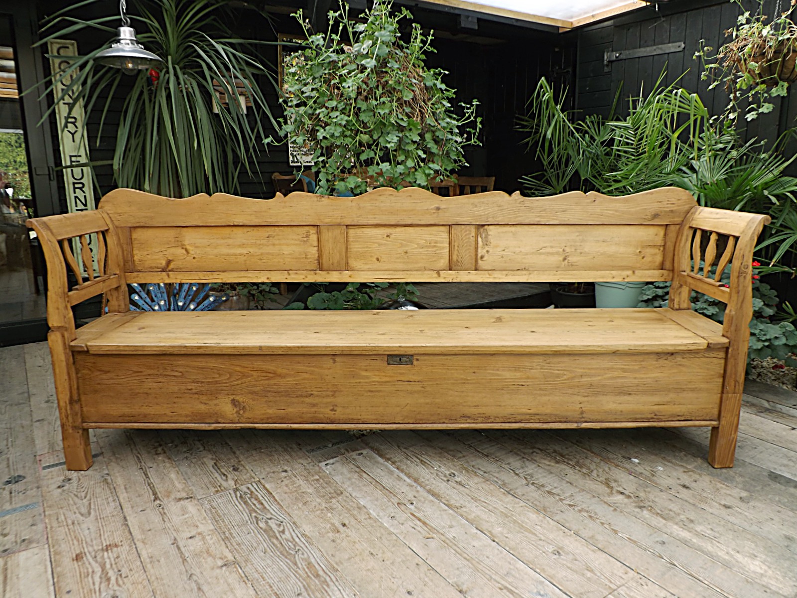 Big! 8ft! Old Antique Pine Hungarian Box / Storage Bench / Settle - We Deliver!