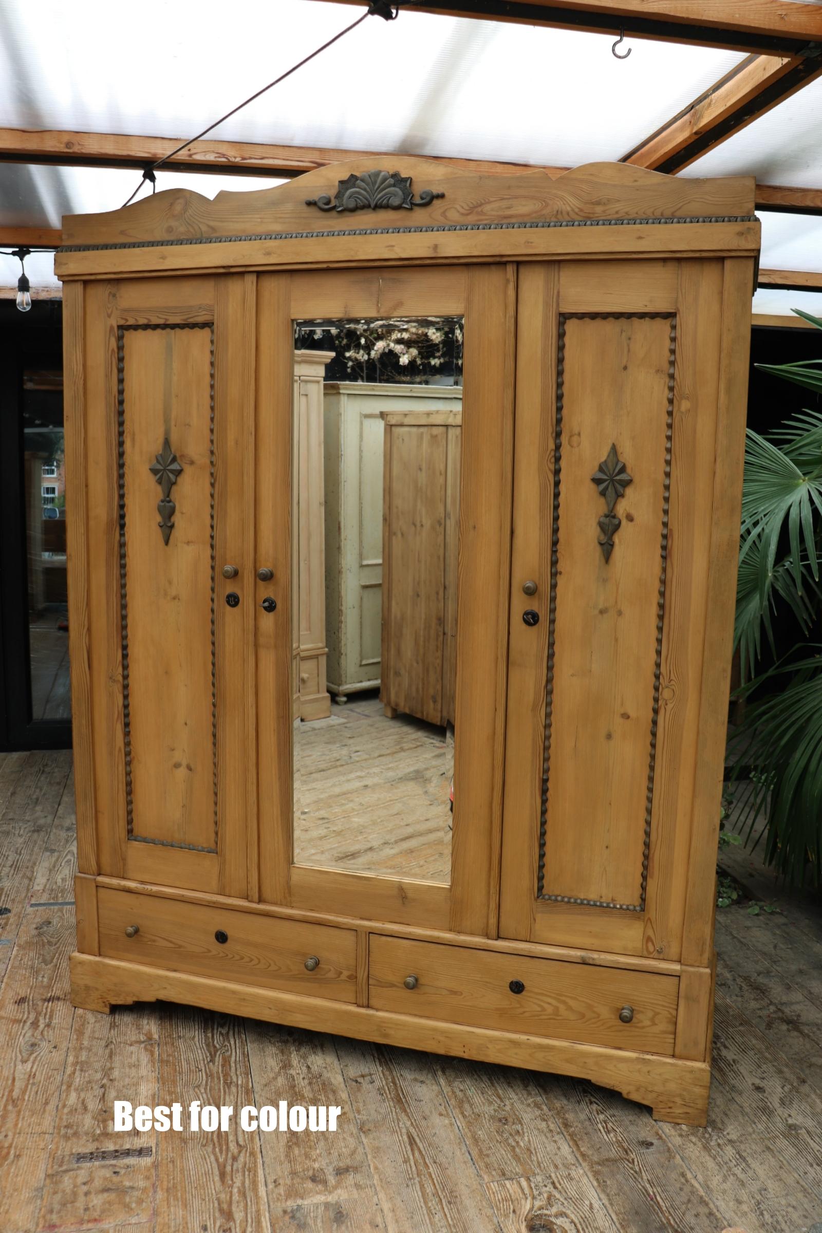 Big Old Antique Pine Triple Knock Down Combination Wardrobe