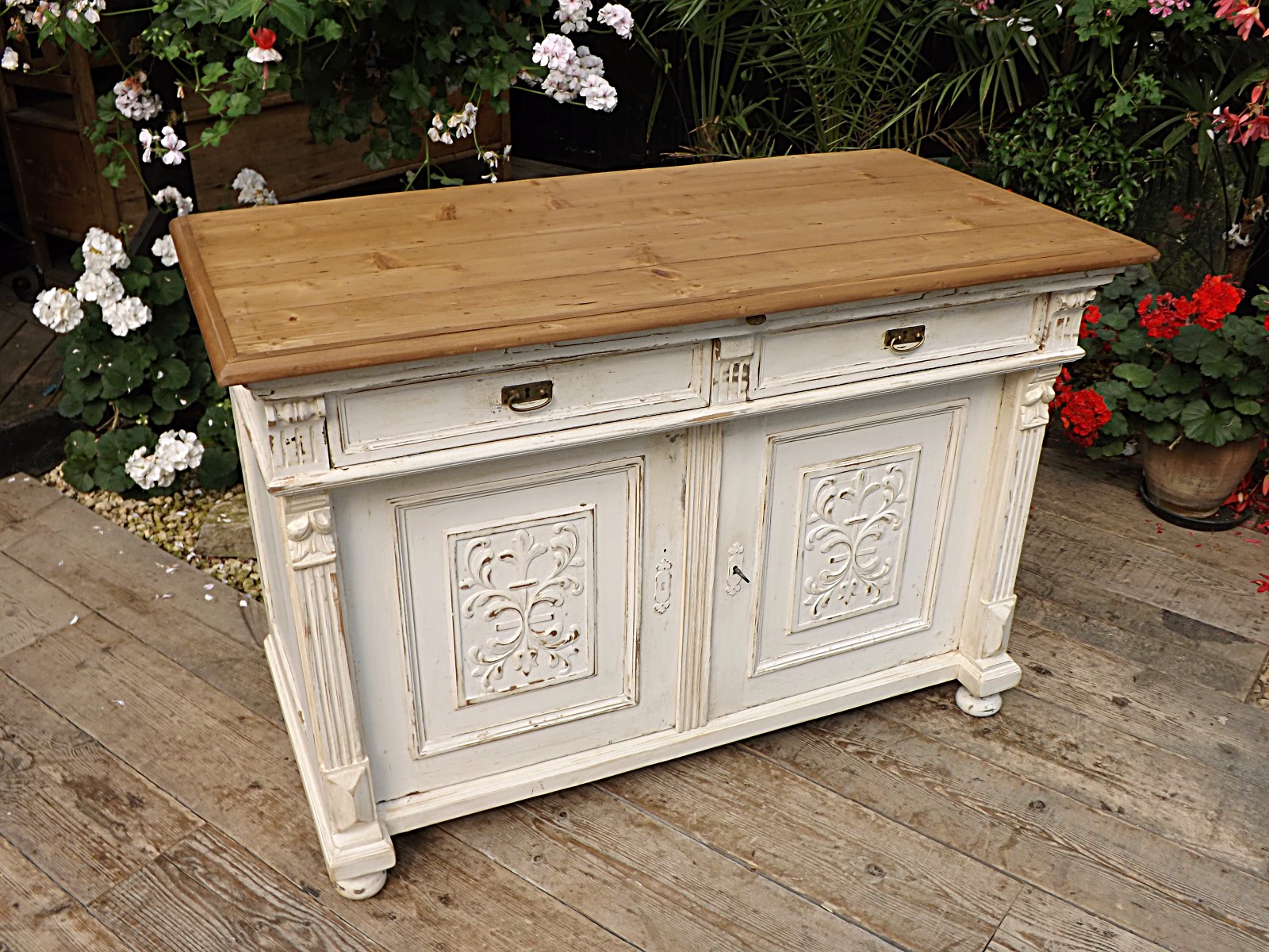 Big Old Antique Pine / White Painted Base / Sideboard / Cupboard / Cabinet - We Deliver!