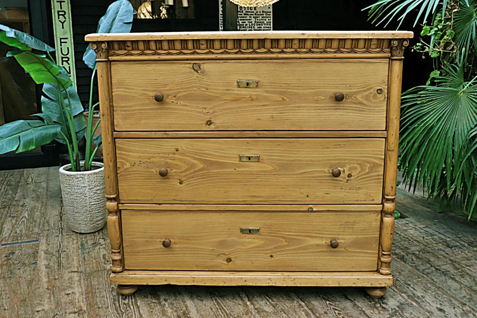 Big Old Mid 19th Century Pine Chest of Three Drawers