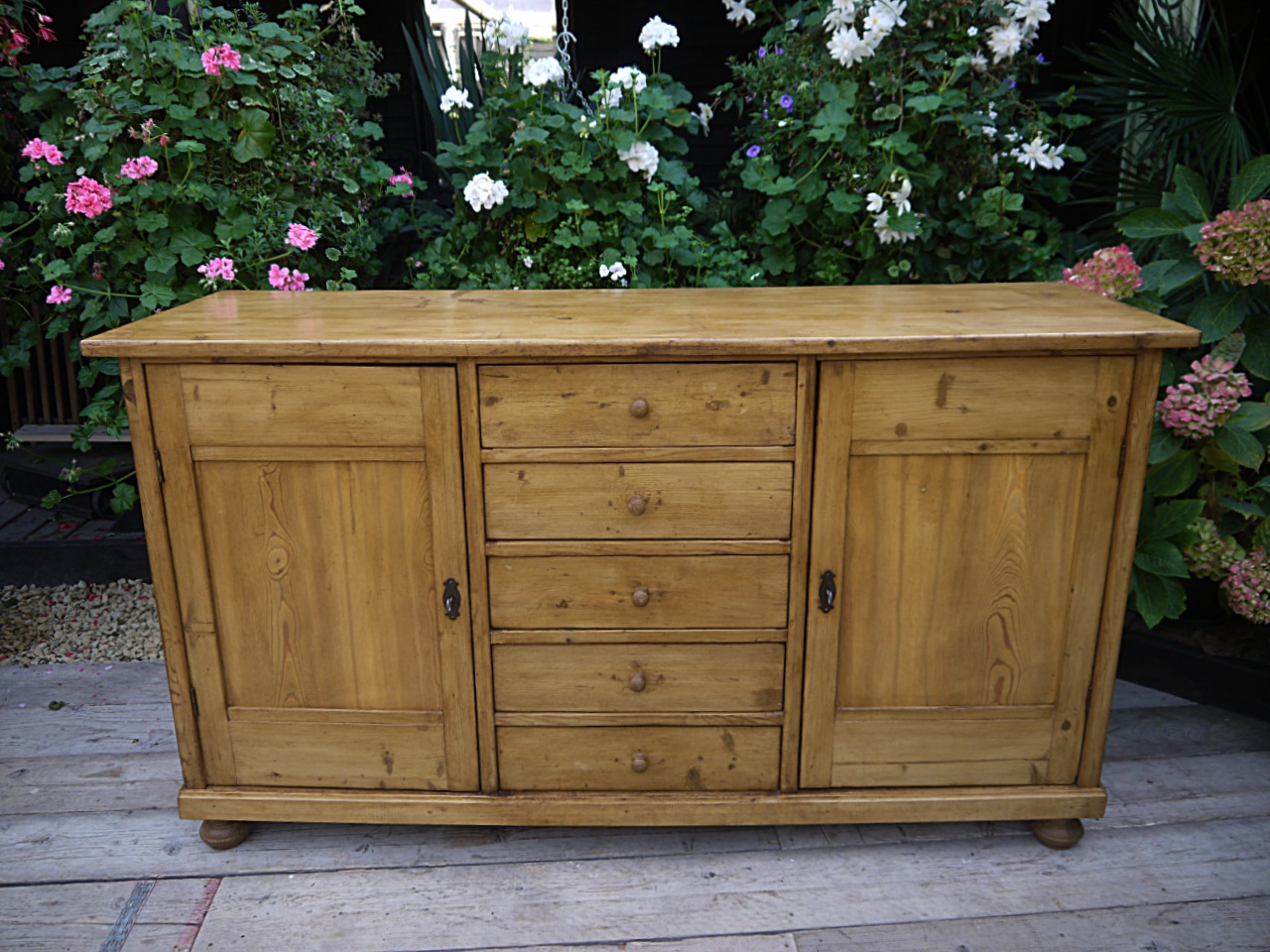 Big! Old Original 1.8M Antique Pine Dresser Base Sideboard / Kitchen Cupboard