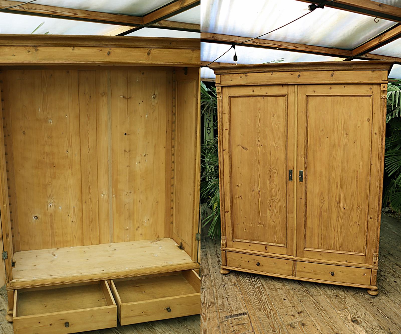 Big Old Stripped Pine Double (size Triple) Knock Down Wardrobe