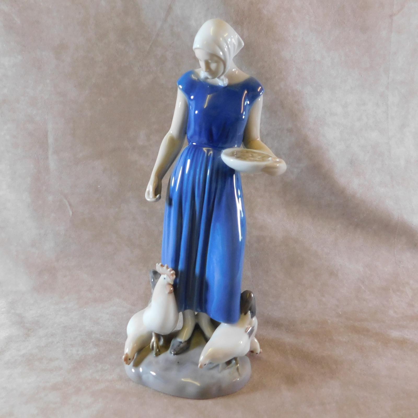 Bing & Grondahl 'B&G' Poultry Lady Girl Feeding Chickens Figure 2220
