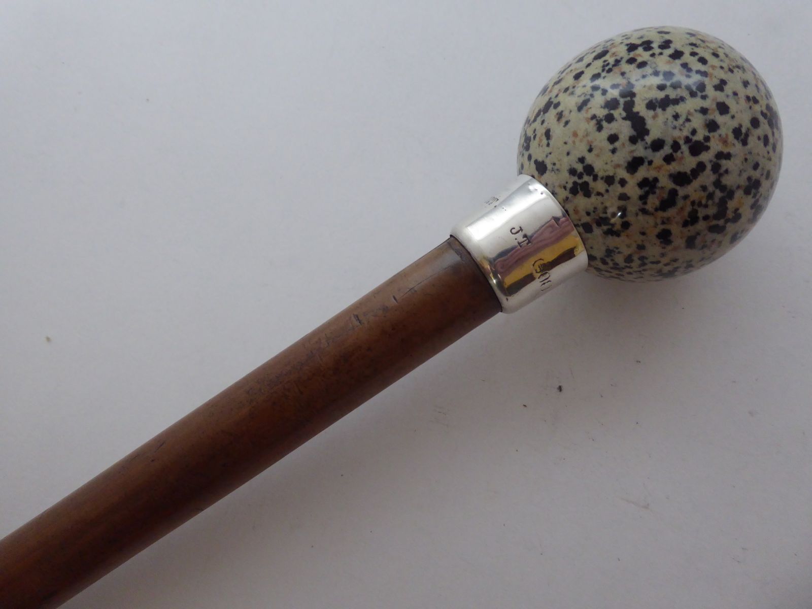 Birmingham 1885 Agate Top Walking Stick Cane Hallmarked Silver Bamboo Shaft