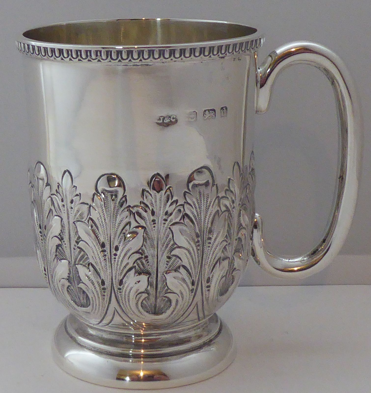 Birmingham 1903 Art Nouveau Hallmarked Solid Silver Christening Mug Tankard