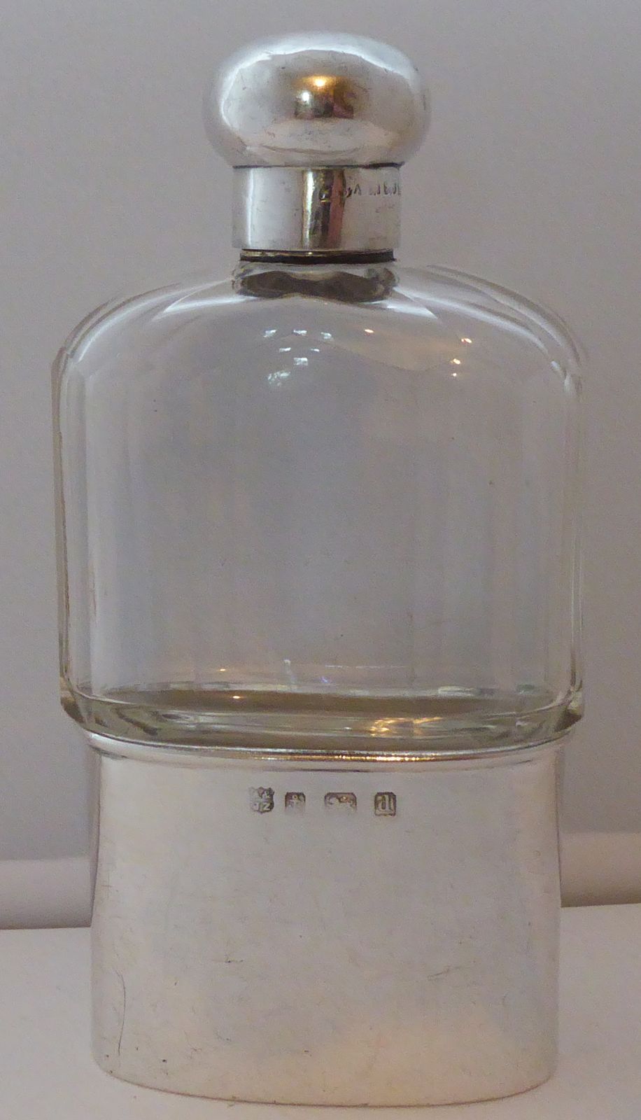 Birmingham 1903 Facet Cut Glass & Solid Hallmarked Silver Hip Flask