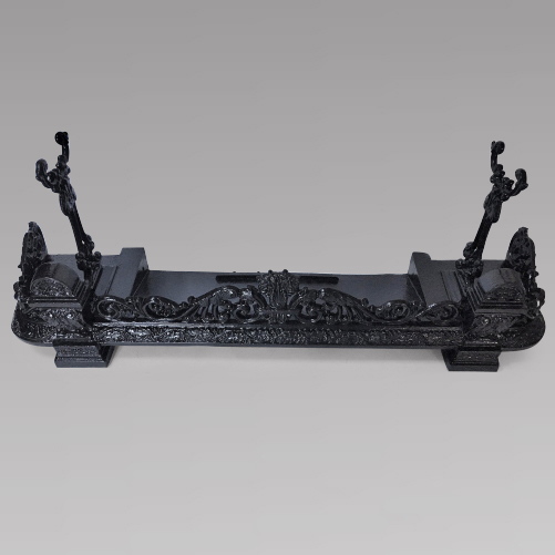 Black Cast Iron Victorian Fender with Iron Stands C.1880