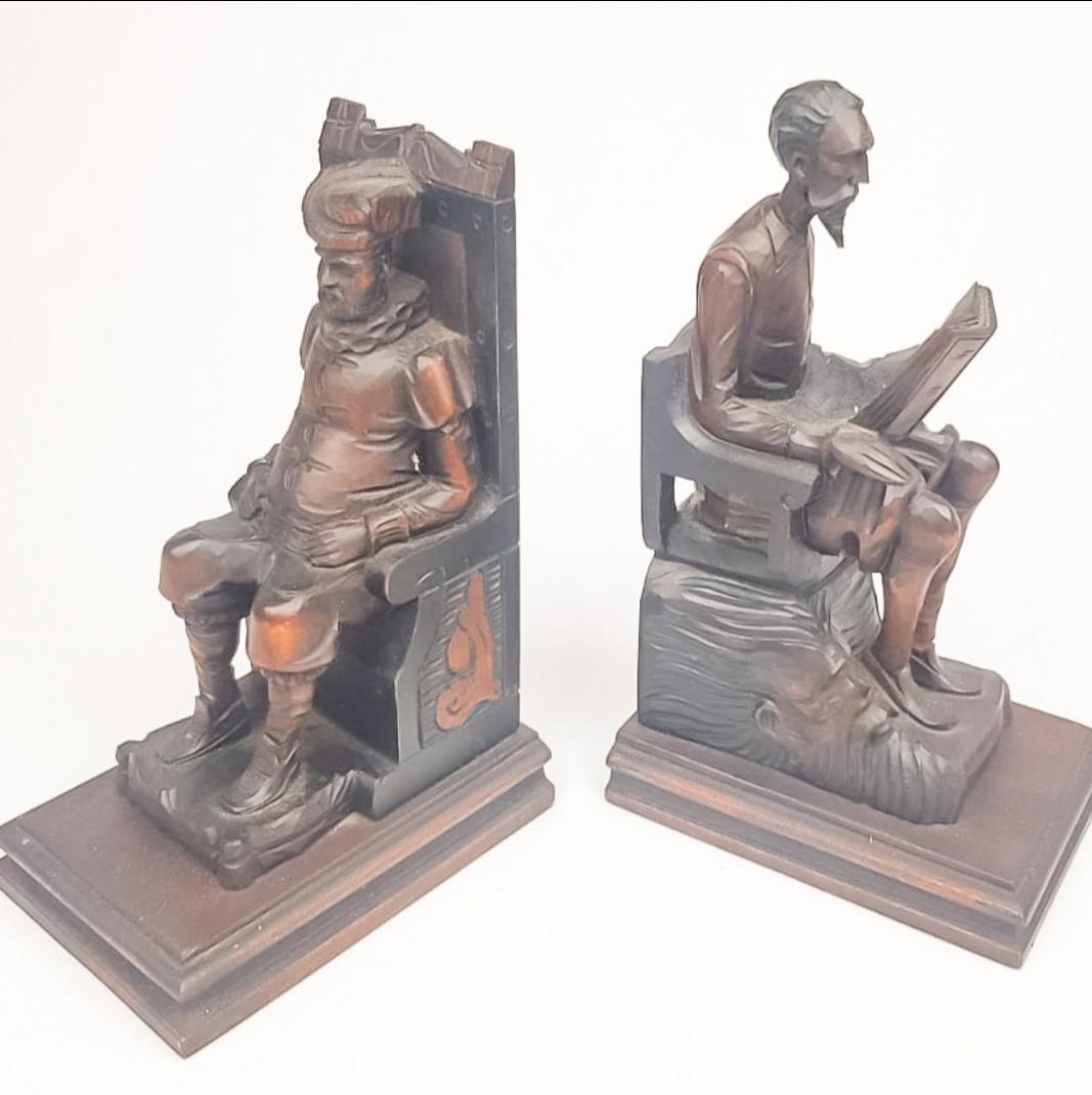 Black Forest Carved Bookends Don Quixote & Sancho Panza